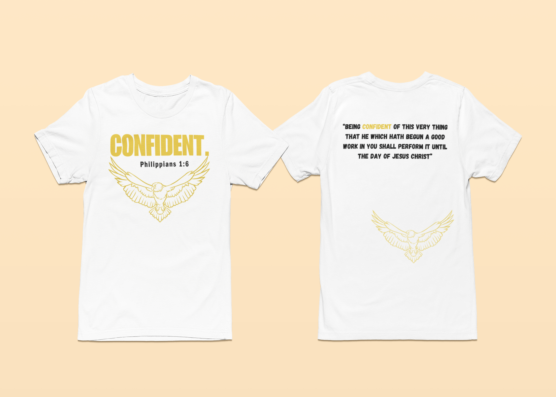 Being CONFIDENT of this very thing as the scripture says in Philippians 1:6. Wear the Godly Confidence and let that be a visual reminder with our 'Confident' shirt!